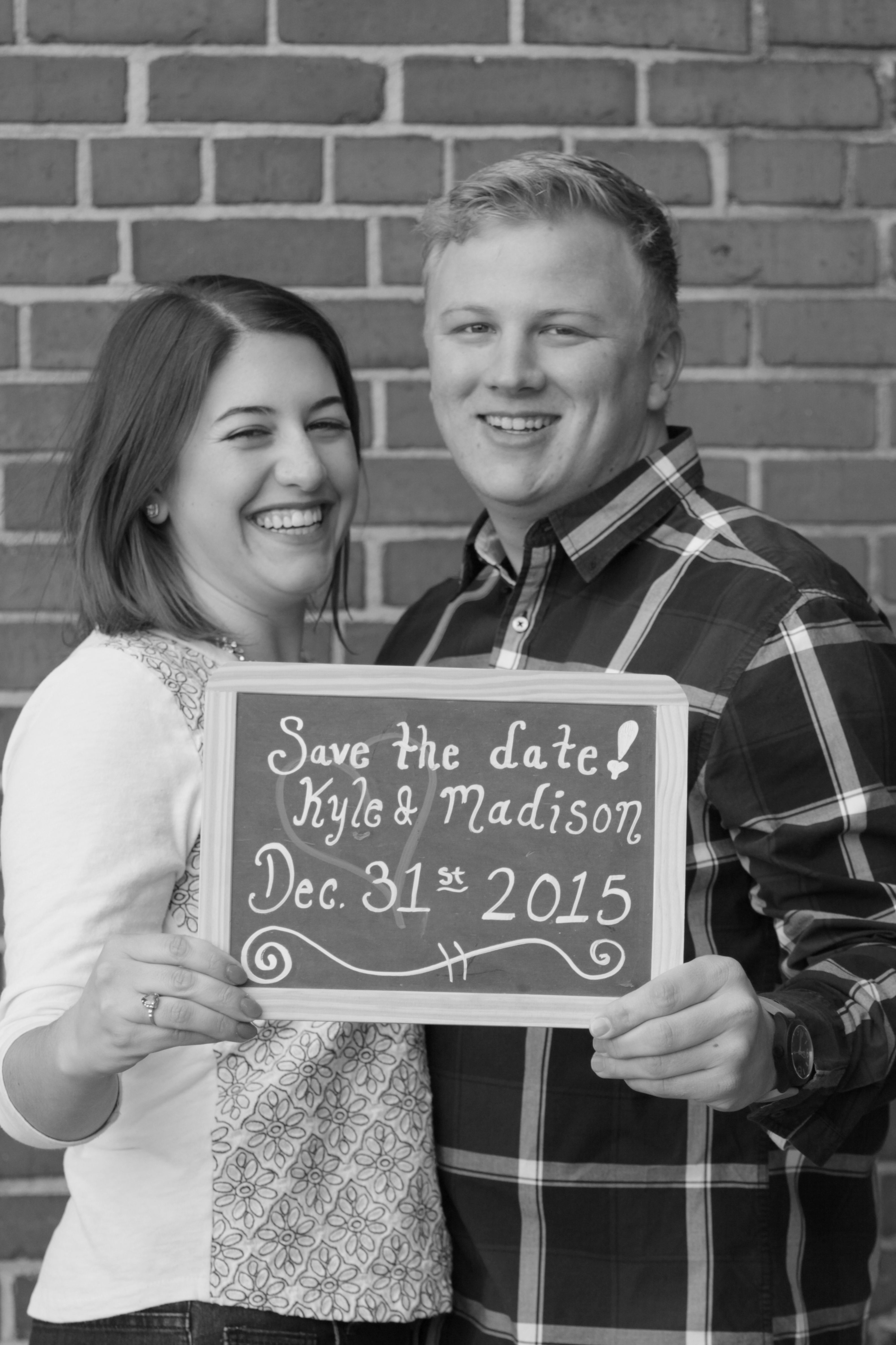 Despite all the excitement in these photos, it was about 20 degrees that morning. We have a bit of a problem with our schedules: they never line up. We had a second problem: our groupon for Save the Dates was expiring in one week. We decided to solve both these problems by taking engagement photos as immediately as our schedules would allow which meant 8 am on a Sunday morning. Did we mention it was 20 degrees? Our photographer (my roommate) said that ideal light would be either 8 am or 4 pm. Little did we know that one of those options also came without feeling in our fingers and toes. Regardless, we were determined to get good photos (in as little time as possible). The one you see pictured is one of the many in which Kyle’s jacket was around me. No, it was not intended to be adorable; I demanded he put it on me because I had stopped feeling my limbs. Of course, despite mistakes Kyle made in the past (like not giving his prom date his jacket when she claimed she was cold), he willingly complied. He must love me or something.