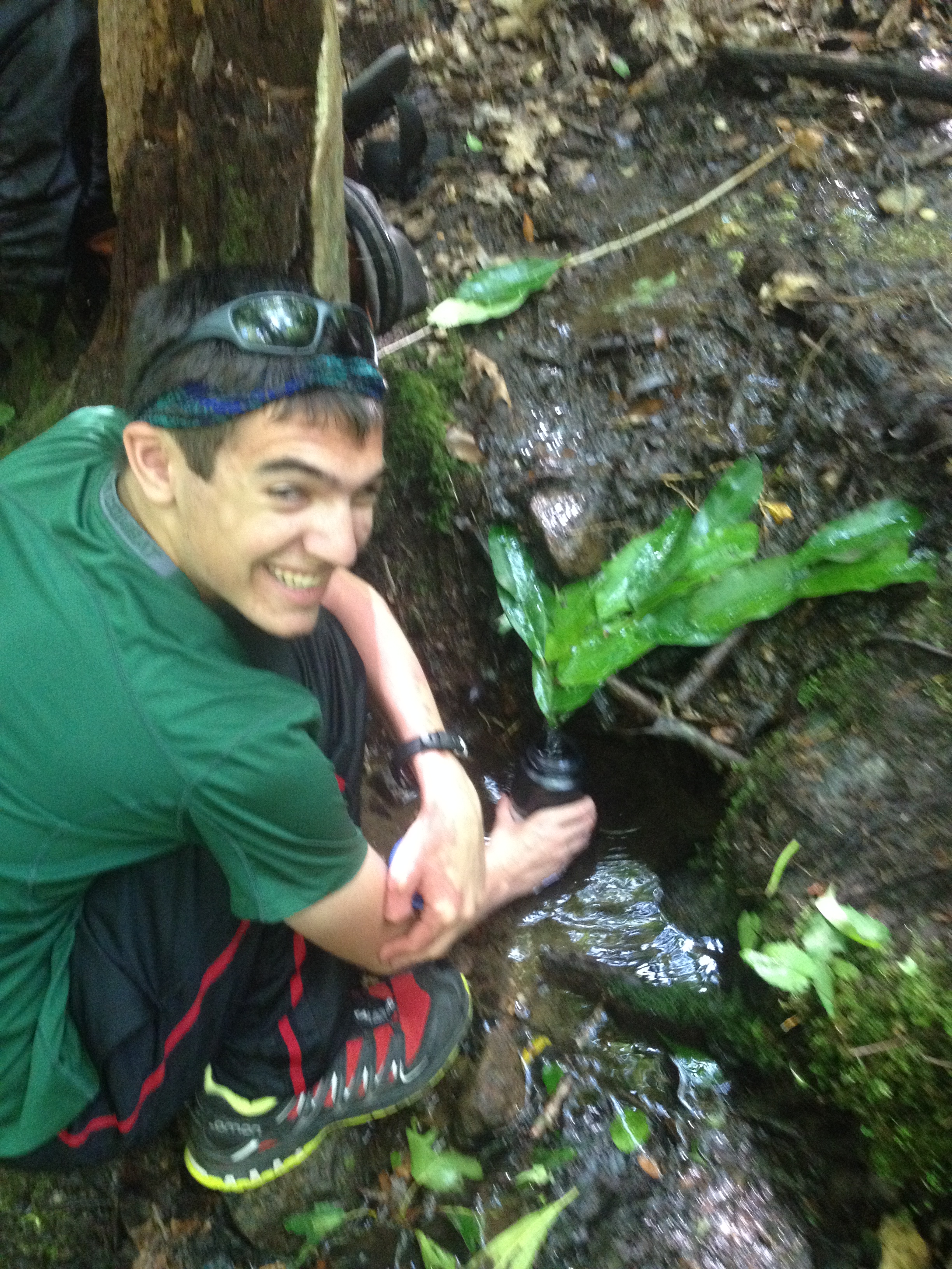 Here’s a bonus picture. Sometimes our water sources where just a puddle and required innovation. Props to David Aulie for creating this Rhododendron leaves waterfall: